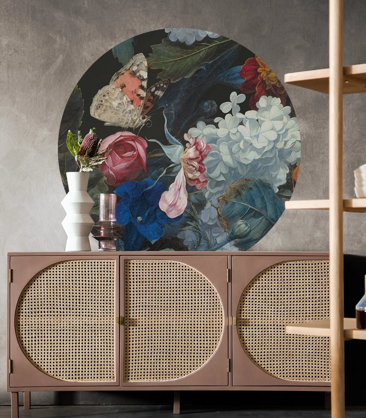 Step into the charm of dots - Dragonfly Garden, a round wall mural that brings the quintessence of a garden idyll into your space. Abounding with lush flowers and shimmering dragonflies, this mural is the perfect way to add a touch of nature to your home.