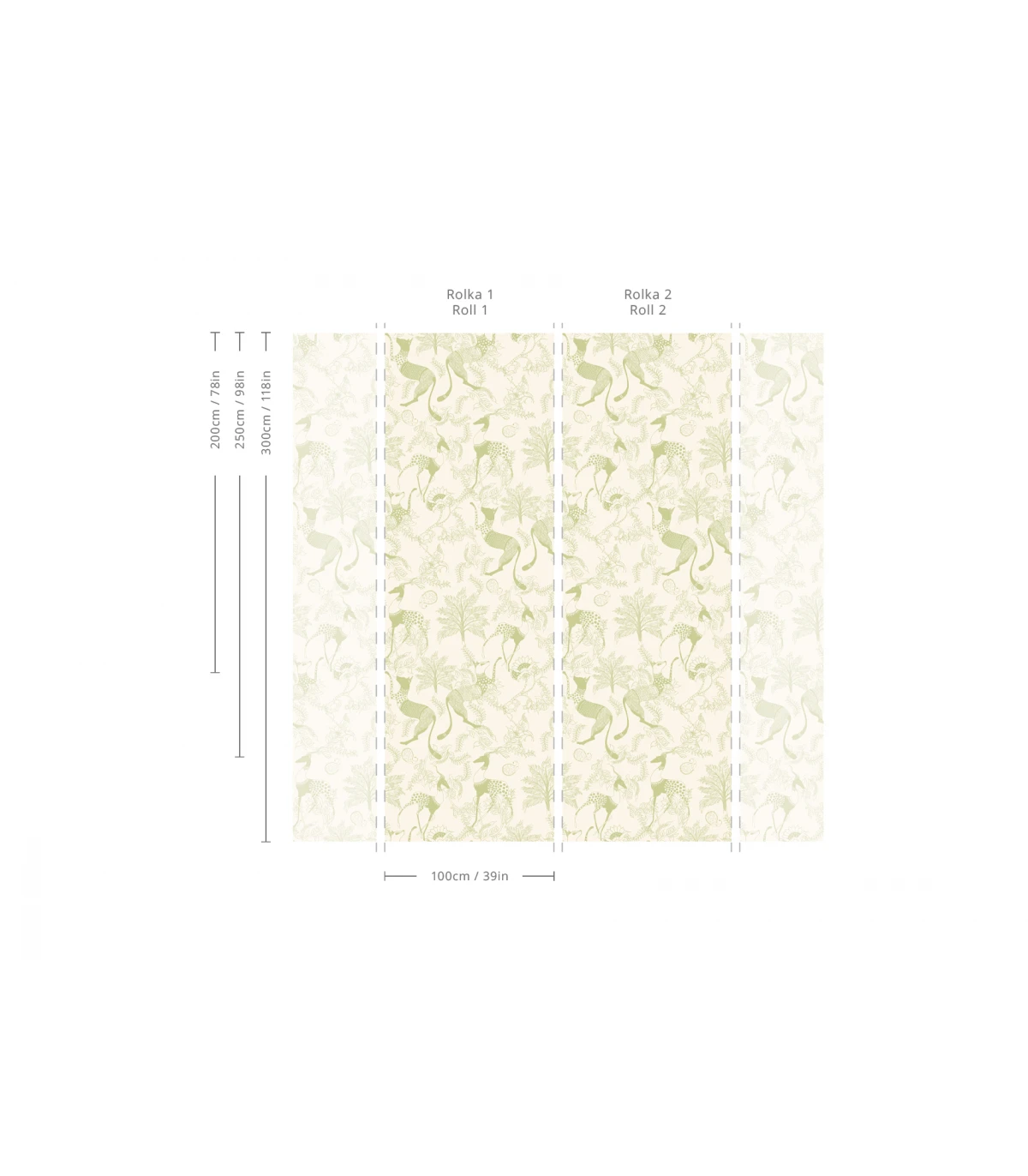 The Mythical Animals Green wallpaper collection introduces a fairy-tale forest scene into interiors. With its palette of greens, it brings harmony and tranquility to a room, while also adding a touch of mystery. Perfect for a child's bedroom to stimulate creativity and imagination, it also suits any home space that aims to inspire and relax.