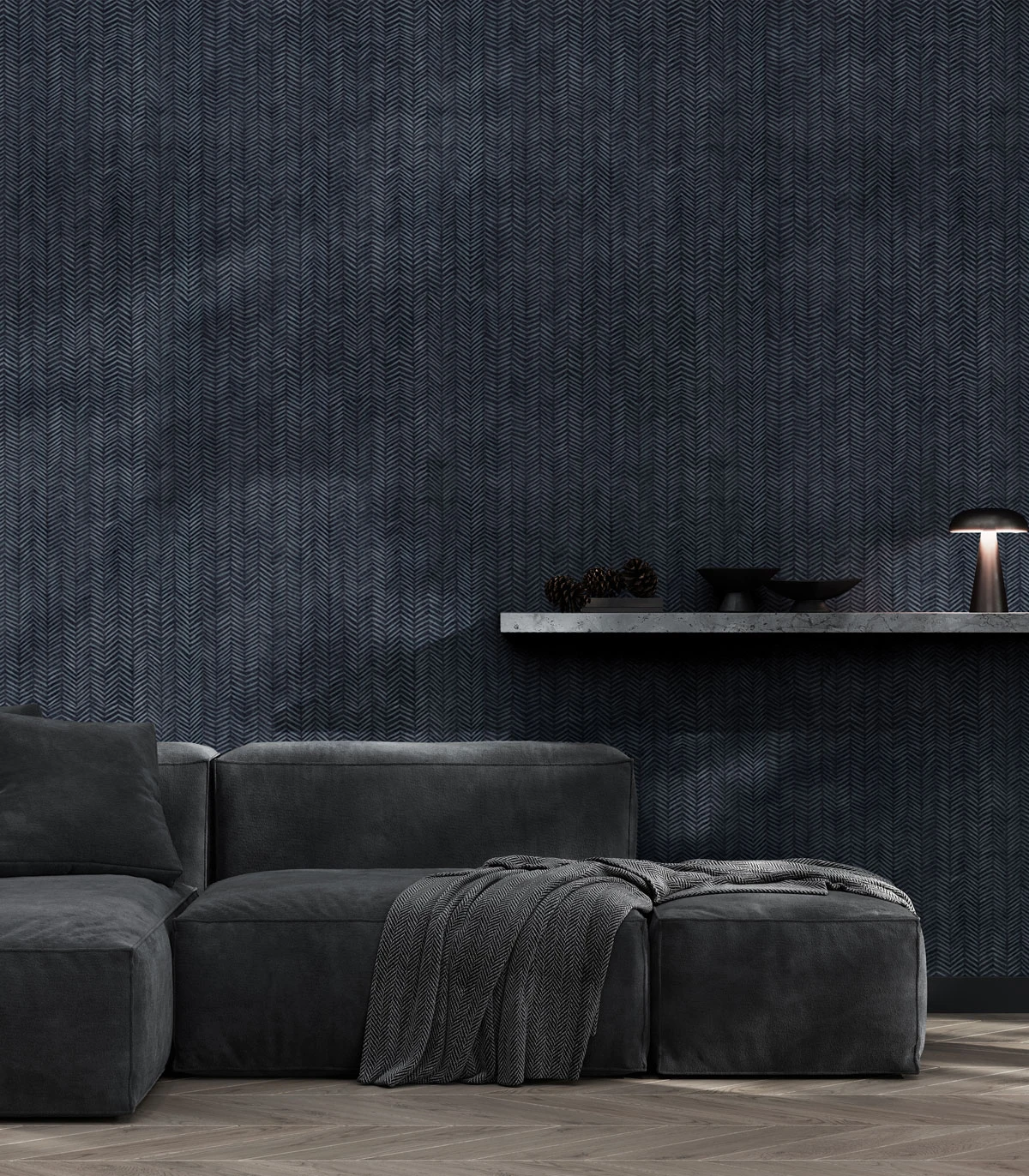 Tapeta Herringbone Blue to stylowa dekoracja, która łączy klasyczny wzór jodełki z nowoczesnym, głębokim niebieskim kolorem. Idealna do przestrzeni w stylu skandynawskim, nowoczesnym lub eklektycznym. Tapeta ta nadaje wnętrzom elegancji i charakteru, jednocześnie tworząc atmosferę spokoju i wyrafinowania. Doskonale sprawdzi się w salonie, sypialni czy gabinecie.